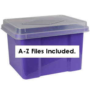 Includes A-Z Files. Transparent lid for easy viewing of contents. Ideal for the office, home or car. Boxes can be stacked with / without lid or nested without lid for premium storage. Suitable for general storage or holding standard suspension files. Colour co-ordinate your storage requirements. Optional castors for easy mobility.