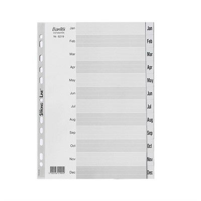 These dividers fit in 2, 3 and 4 ring binders. They are made from polypropylene material which is durable and long lasting. Each divider features a reinforcement strip along the punched holes to ensure they don t rip or tear. All tabs are pre-printed.
