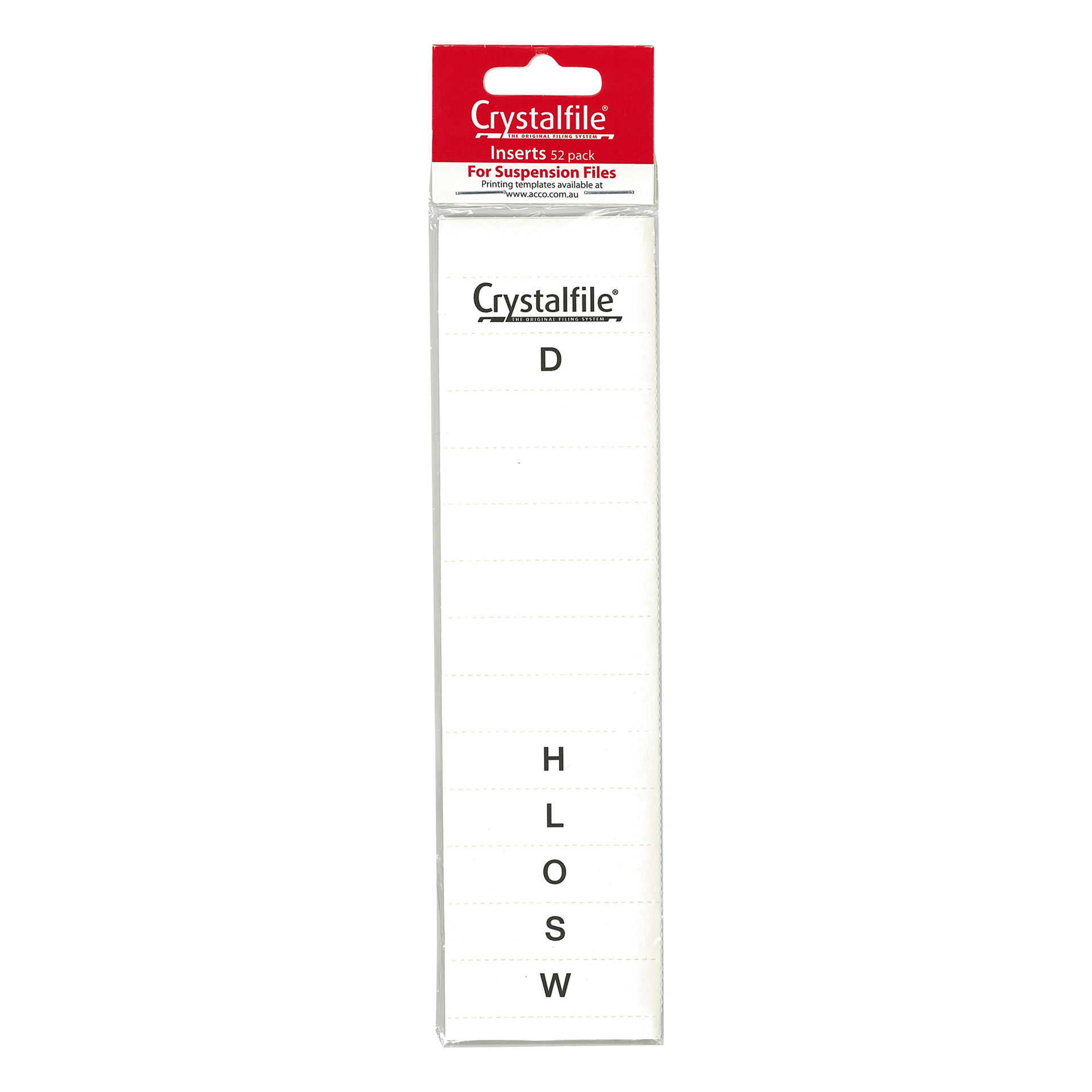 CRYSTAL FILEINSERTS A-Z WHITE PK 52