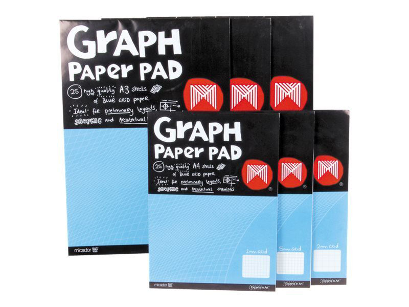 High quality, blue grid graph paper. Available in various paper sizes, with the option of 1mm, 2mm and 5mm grids. Ideal for preliminary layouts, graphic and architectural drawings. Used by professionals and students alike. 25 sheets per pad.