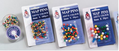 MAPPING PINS SOVEREIGN 6MM ASST COL PK50