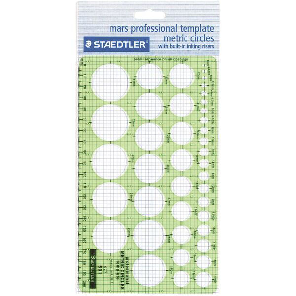 This Staedtler Metric Circles Template is perfect for use when you're doing technical drawing as it'll help you to create perfect circles. The template incorporates an assortment of different sizes and a scale that helps you to find the right one for your drawing. The template has a sturdy plastic construction. It's ideal for use with a thin pencil lead so you can achieve accurate results. The stencil allows you to create 41 different circles with diameters between 2 and 34 mm. The template has a transparent green design so you'll be able to see through to your paper below. The ruler scales and cut-out identifications are printed in black so they'll be easy to read. It has a matte finish to reduce glare while you're working.