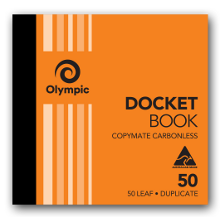 OLYMPIC DOCKET BOOK No. 50 Olympic Business Books provide a quick and effective way of managing any business transaction. - 120 x 125mm - 50 Leaf, Carbonless Duplicate - Sequentially numbered for filing and accounting purposes - Ideal for use in restaurants and cafes