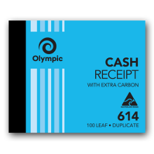 OLYMPIC CASH RECEIPT BOOK No. 614 Olympic Business Books provide a quick and effective way of managing any business transaction. - 100 x 125mm - 100 Leaf, Carbon Duplicate - Sequentially numbered for filing and accounting purposes - Ideal for customer cash transactions - FSCĀ® Certified