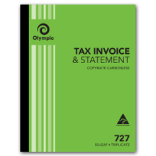 OLYMPIC INVOICE AND STATEMENT BOOK No. 727 Olympic Business Books provide a quick and effective way of managing any business transaction. - 250 x 200mm - 50 Leaf, Carbonless Triplicate - Sequentially numbered for filing and accounting purposes - Ideal for invoicing customers
