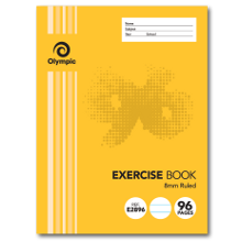 OLYMPIC EXERCISE BOOK With over 100 different scholastic books, the Olympic range works for you. - 225 x 175mm (9 'x 7') - 96 Pages - 8mm Feint Ruled