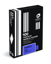 OLYMPIC MANILLA FOLDERS With a wide variety of filing products, Olympic works for you. - Purple Box 100 - Foolscap - 186gsm Board - Double creased for extra capacity - Pre-slotted for file fasteners - PEFC Certified