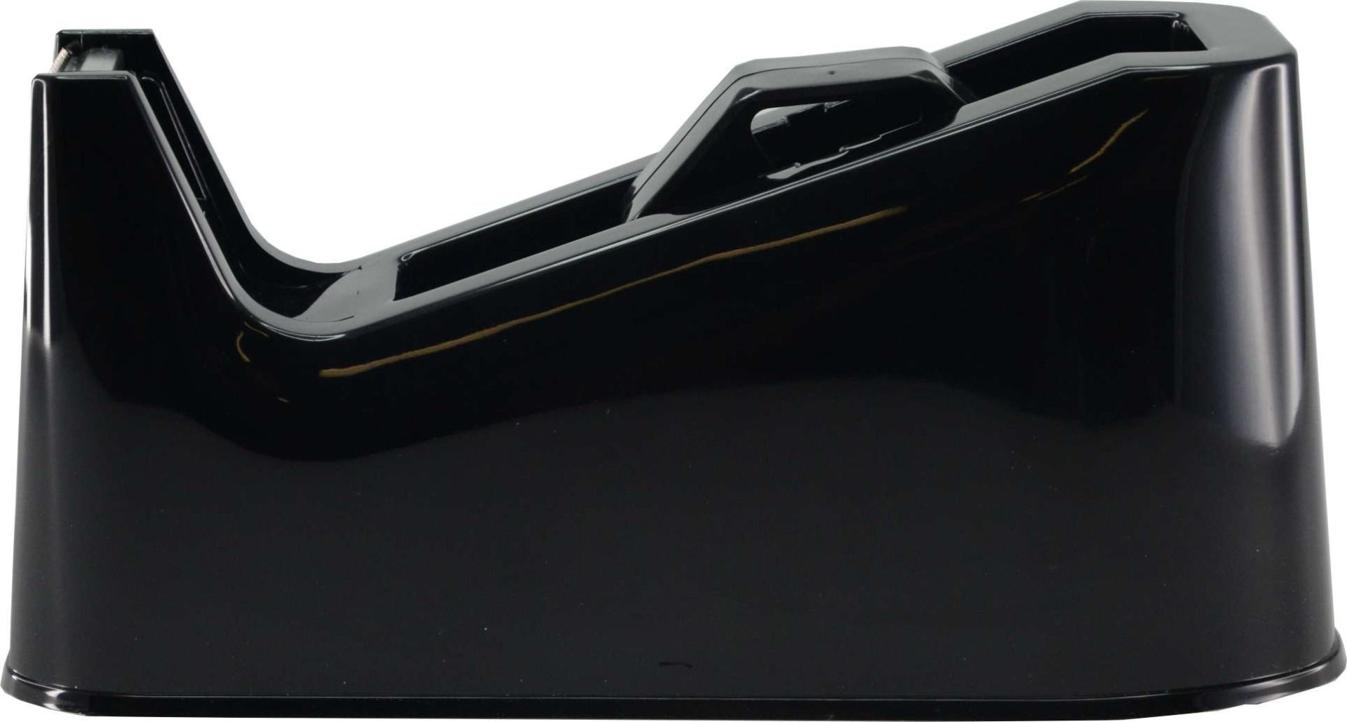 Heavy duty large desk top tape dispenser Black. Full rubber base to prevent slipping and scratching. Heavy Duty Dual Core sizes. Replacement Cutter blades and cores are available. Takes a roll up to 115 mm in diameter. Core diameter: 76.5mm. Tape Width: 24mm. Weighted to 1.4kilos.