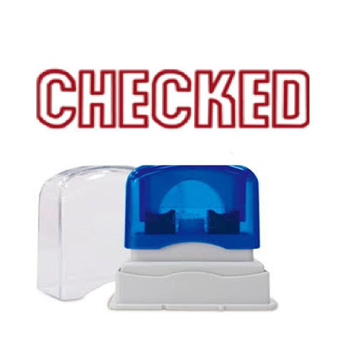 PRE-INKED STAMP - CHECKED OUTLINE TEXT
