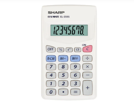 Pocket Calculator - 8 Digit display Battery powered Basic calculator functions plus memory, square root and percent Constant function Easy to use.