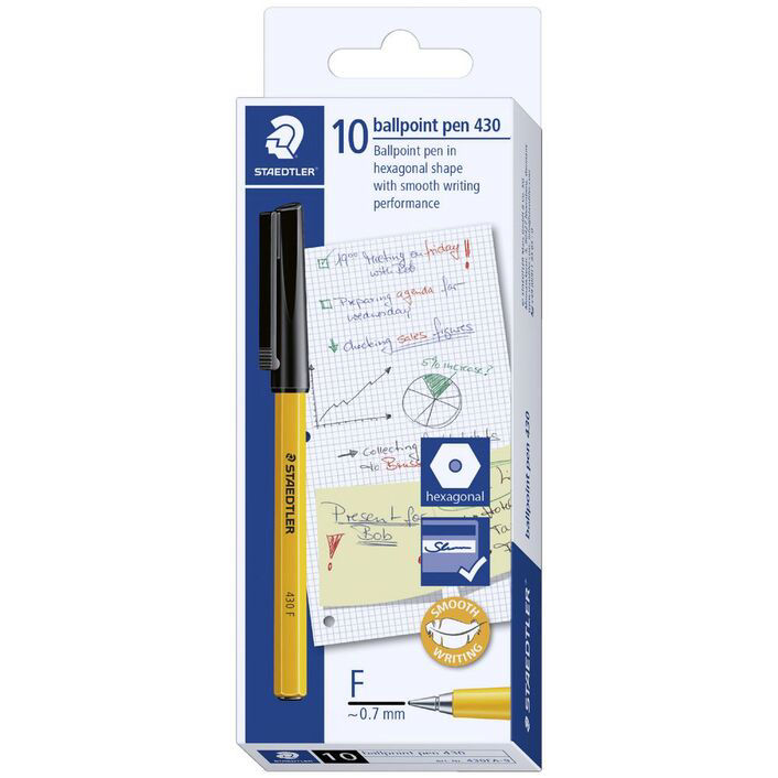 STAEDTLER STICK 430 FINE BLACK BOX 10