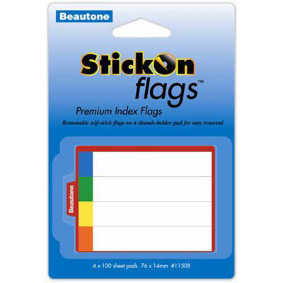 STICK ON FLAGS 14MM X 76MM 4 PADS X 100 SHEETS - ASSORTED