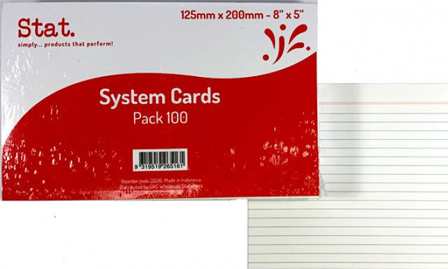 SYSTEM CARDS STAT 8X5 RULED WHITE PK100