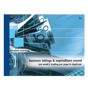 This book bridges the gap between small business’ daily record keeping and the accountant’s computer. Suitable for most shops, restaurants, tradespeople and small businesses. One week’s trading in a view, in duplicate, no carbon required. Hard cover to paper saving soft covers – redesigned reducing paper content of covers by 80%. 54 pages per book (one week per page) in duplicate, showing daily receipts by classification, sundries, total receipts and amount banked. Cheque payments are listed and cash outgoings are recorded separately by day and nature of expenditure.